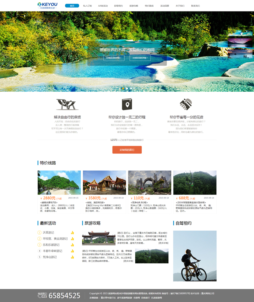Project Description 6人游旅行网隶属于北京六人游国际旅行社有限公司。打造“为爱出行”:专为家庭,朋友,情侣间的旅行,提供私家小团精品游。打造高品质的旅行产品,解决传统跟团游和自由行存在的问题,将旅行服务做到臻善臻美。 Official website address 璧山http://www.keyoujq.com I want to share