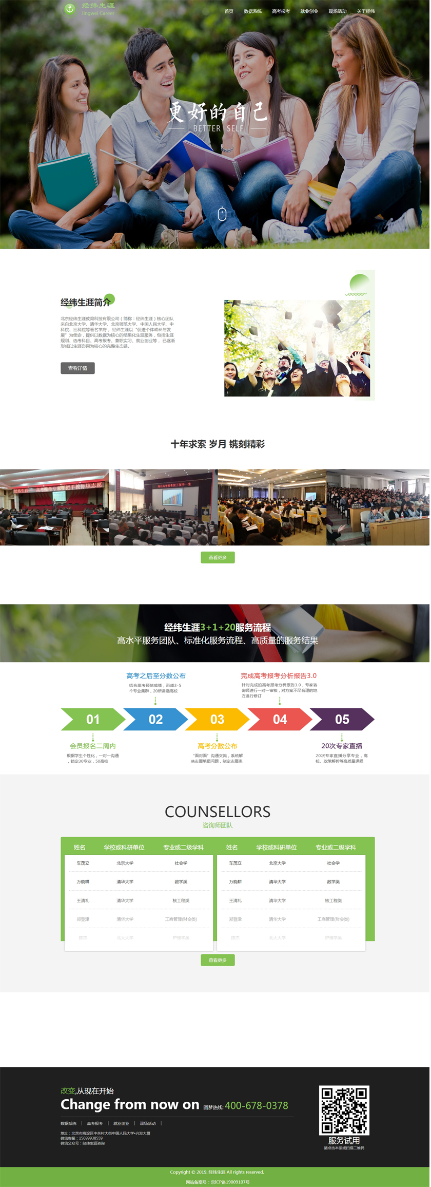 Project Description 北京经纬生涯教育科技有限公司(简称:经纬生涯)核心团队来自北京大学、清华大学、北京师范大学、中国人民大学、中科院、社科院等著名学府, 经纬生涯以“促进个体成长与发展”为使命,提供以数据为核心的结果化生涯服务,包括生涯规划、选考科目、高考报考、兼职实习、就业创业等, 已逐渐形成以生涯咨询为核心的完整生态链。 Official website address 璧山http://www.jingweishengya.com/ I want to share